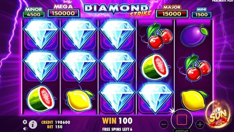 Ngay khi truy cập vào trò chơi, bạn sẽ thấy một bảng quay với các biểu tượng kim cương đa dạng như xanh, đỏ, tím, vàng,… Mỗi biểu tượng sẽ có giá trị thưởng khác nhau tùy theo số lượng xuất hiện trên hàng thanh toán. Ngoài ra còn có các biểu tượng đặc biệt như Wild và Scatter hỗ trợ tạo chuỗi chiến thắng. Giao diện được thiết kế trực quan, giúp người chơi dễ theo dõi và thao tác.