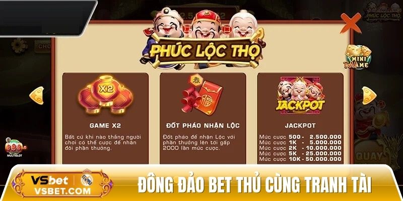 Nổ hũ phúc lộc thọ là siêu phẩm slot mang đến trải nghiệm đậm chất Á Đông cùng cơ hội trúng jackpot triệu đô. Game không chỉ thu hút bởi phần thưởng lớn mà còn chinh phục người chơi nhờ hàng loạt ưu điểm vượt trội. Hãy tham gia nha cai uy tin vsbet cc ngay hôm nay để cảm nhận trọn vẹn sự phấn khích và cơ hội chạm tay vào jackpot khủng, làm giàu siêu nhanh cùng trò chơi nổ hũ này nhé.